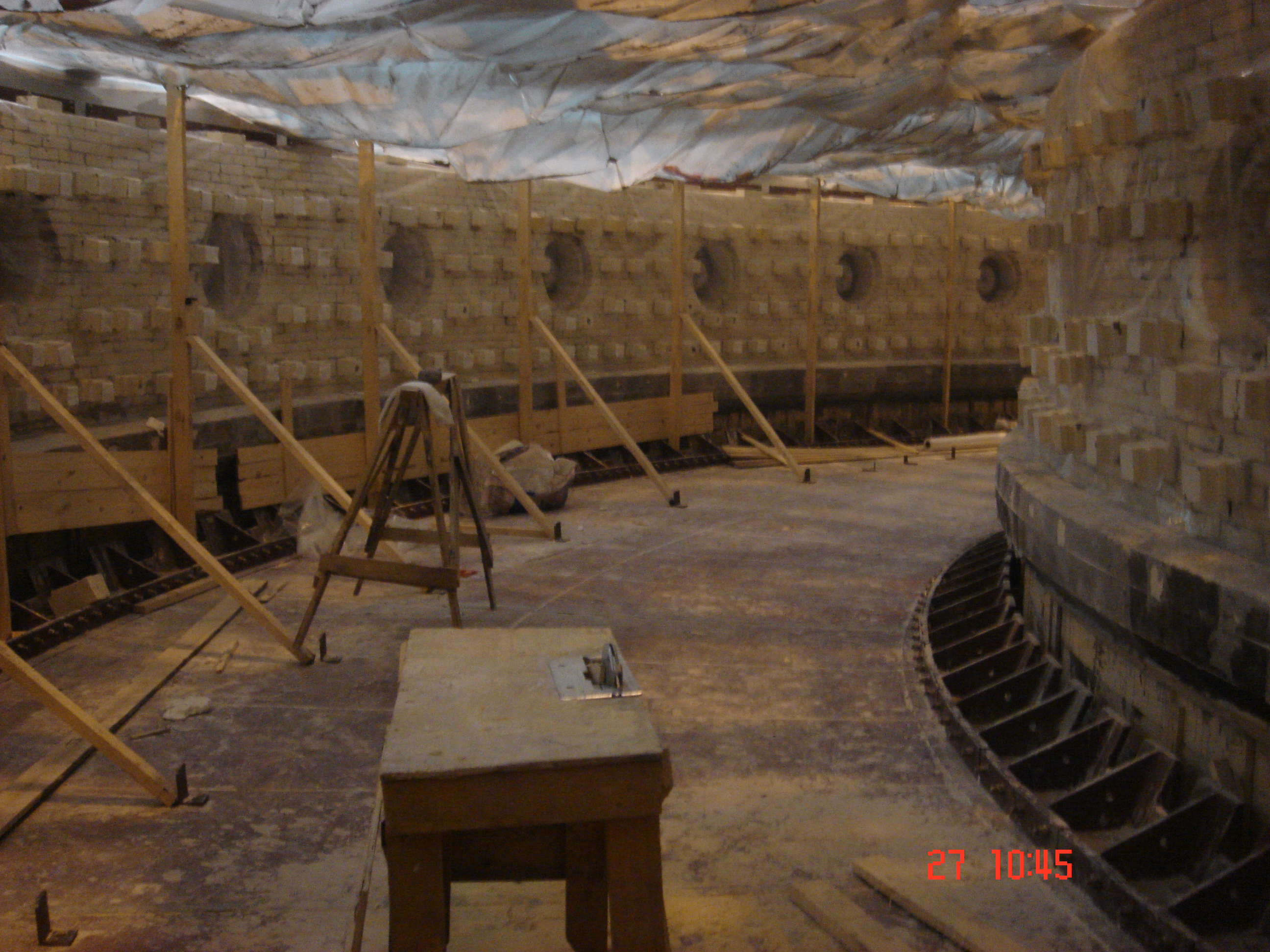 Строительство нагревательной печи, торкретирование трубы в смонтированном состоянии